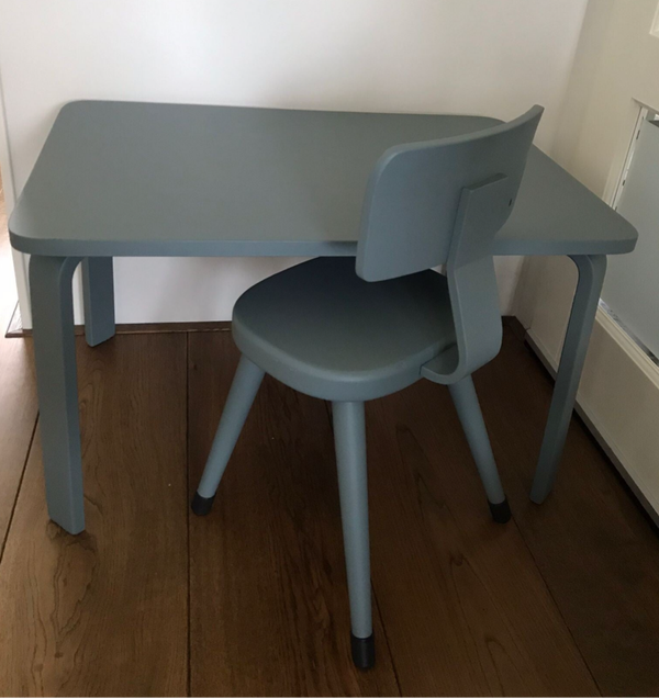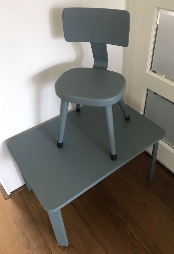 Een super tof en retro kinder school setje. Het geheel staat in een stoere blauw tint Blue Pine van Fusion Mineral Paint en is afgewerkt voor "stevig"gebruik. Dus heerlijk knutselen, tekenen en spelen kan de kleine hier zeker aan!