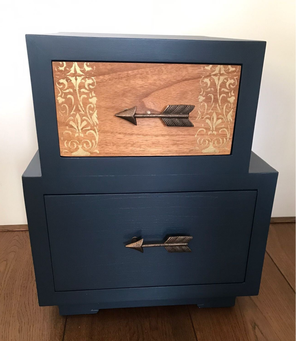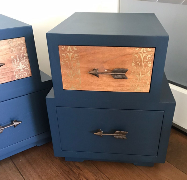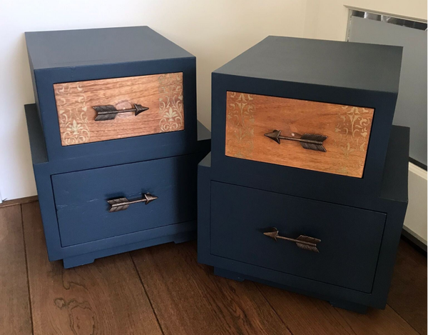 - Een stelletje apartelingen, dat kun je van deze 2 wel zeggen, maar wat zijn ze leuk geworden. De kleur Willowbank van Fusion Mineral Paint hebbben we hier gebruikt, wat goed samen gaat met het natuurlijke hout. De greepjes zijn waanzinnig leuk, maar ook de subtiele details op de lade is wat ons betreft een goede match. Nou ja, en wat betreft de vormgeving, tja....lekker anders dan standaard, tof toch?!