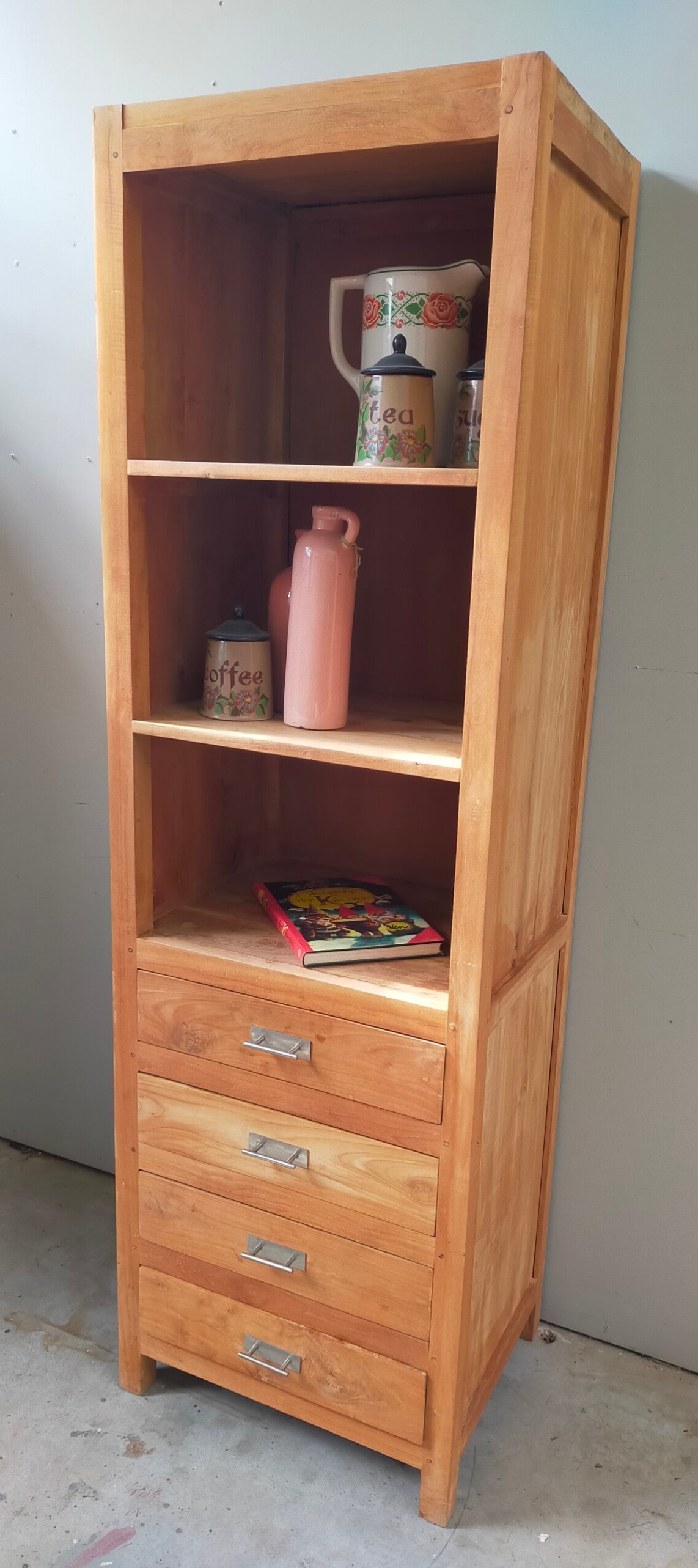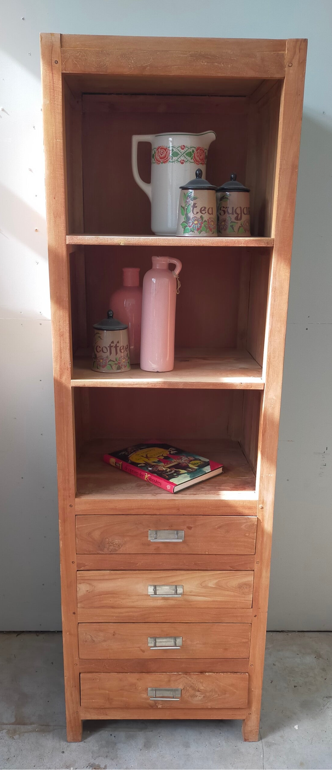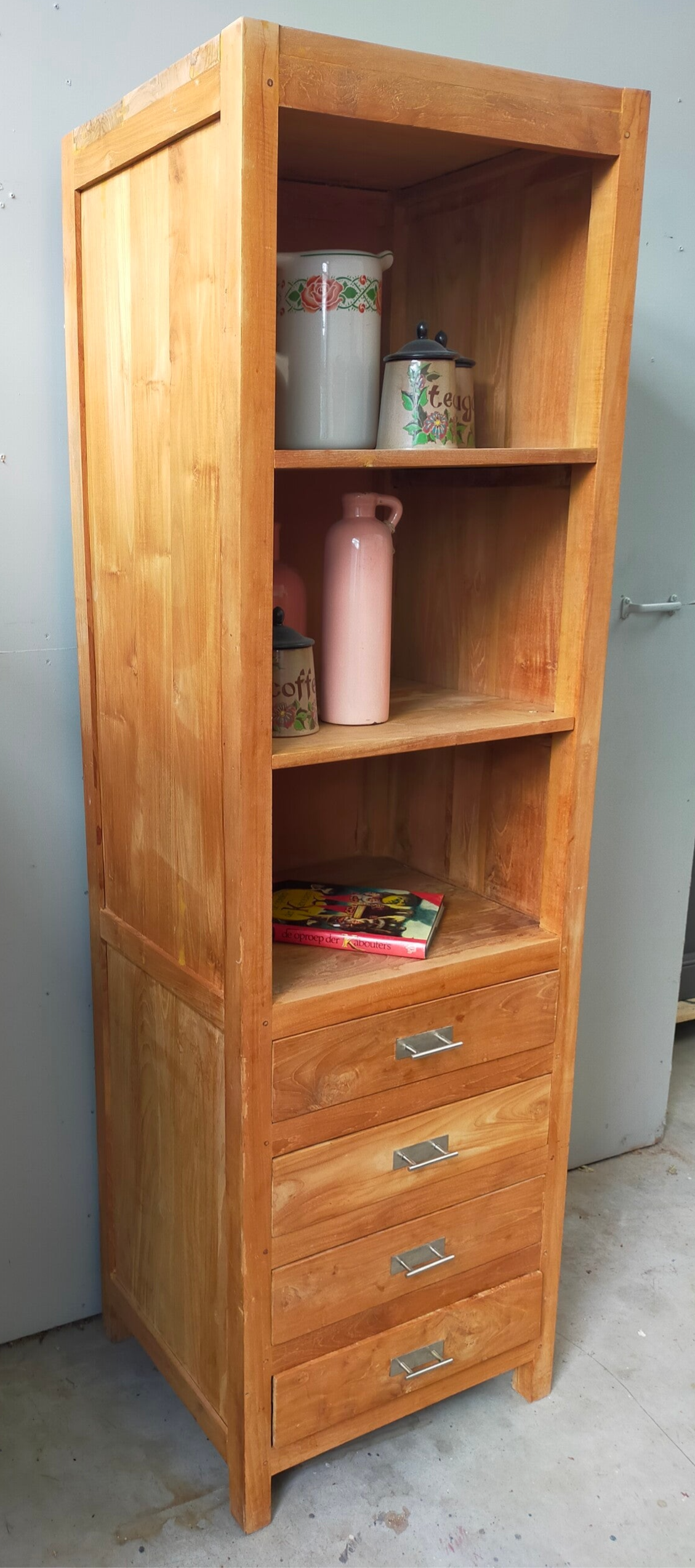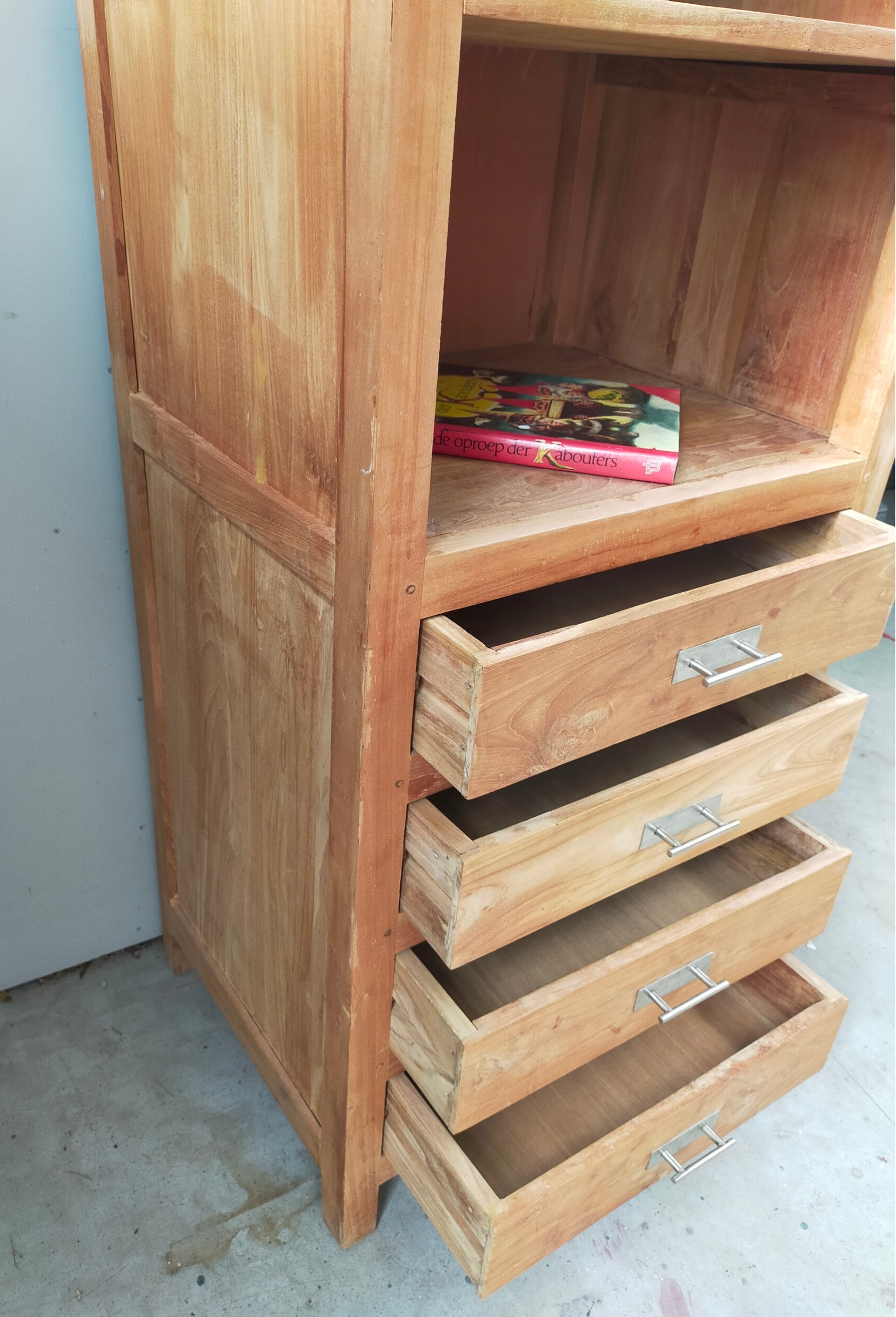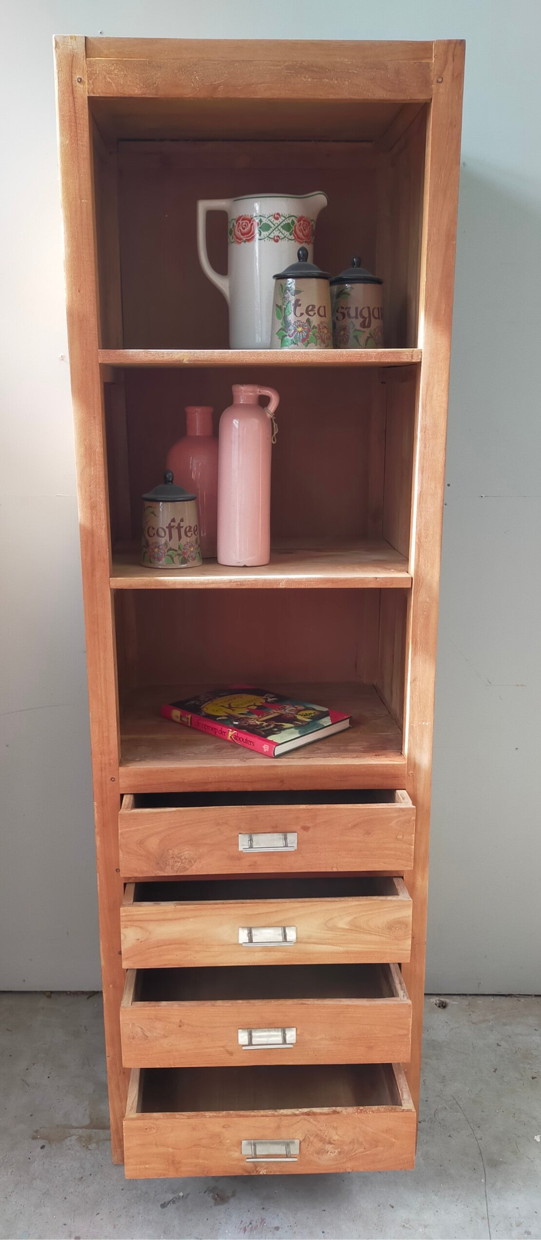 Een, in nog goede orginele staat, boekenkast, kantoorkast, administratie kast enz enz..... genoeg kansen voor deze kanjer toch?! Qau afmetingen echt goed wat ons betreft en de lades, die zijn voorzien van eigentijdse grepen, lopen goed en functioneren
