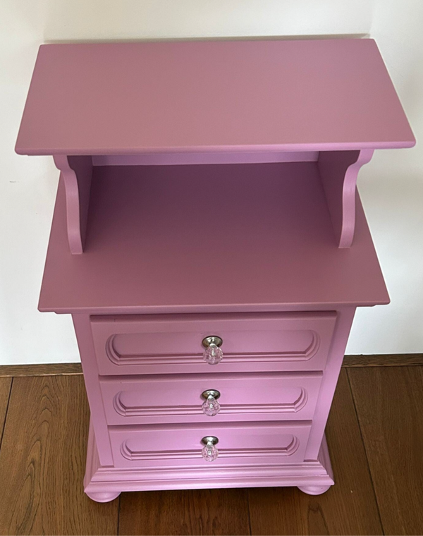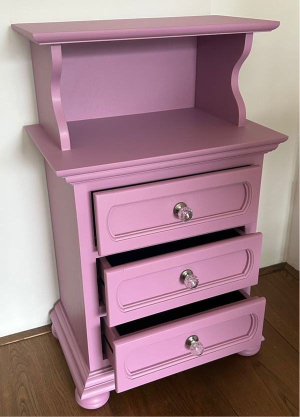 Wat een vrolijkheid! Dit kastje is van massief eikenhout, wat natuurlijk enigszins gedateerd is, maar zo in deze toffe mix kleur van Fusion Mineral Paint helemaal leuk! De knopjes geven een extra sparkle en passen er super bij. Wat ons betreft helemaal leuk op een kinderkamer, maar natuurlijk ook in een kleurrijk interieur! Uiteraard kan het niet anders dan dat de tijd zijn sporen heeft achter gelaten, maar dit is zeker niet storend. Functioneel is deze mooie dame zeker nog!