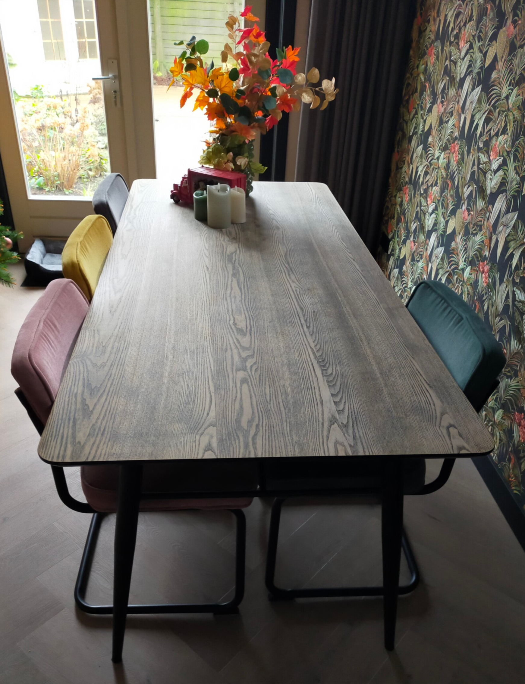Een zeer solide en mooi vormgegeven tafel/eettafel. De vormgeving noemen ze ook wel deens ovaal. Het mooie orginele hout in combinatie met het mat zwarte onderstel is wat ons betreft een zeer goede match. De vintage vormgeven metalen poten geven deze tafel net wat extras. Maw.... warm, stijlvol, vintage en tegelijker tijd helemaal van nu!