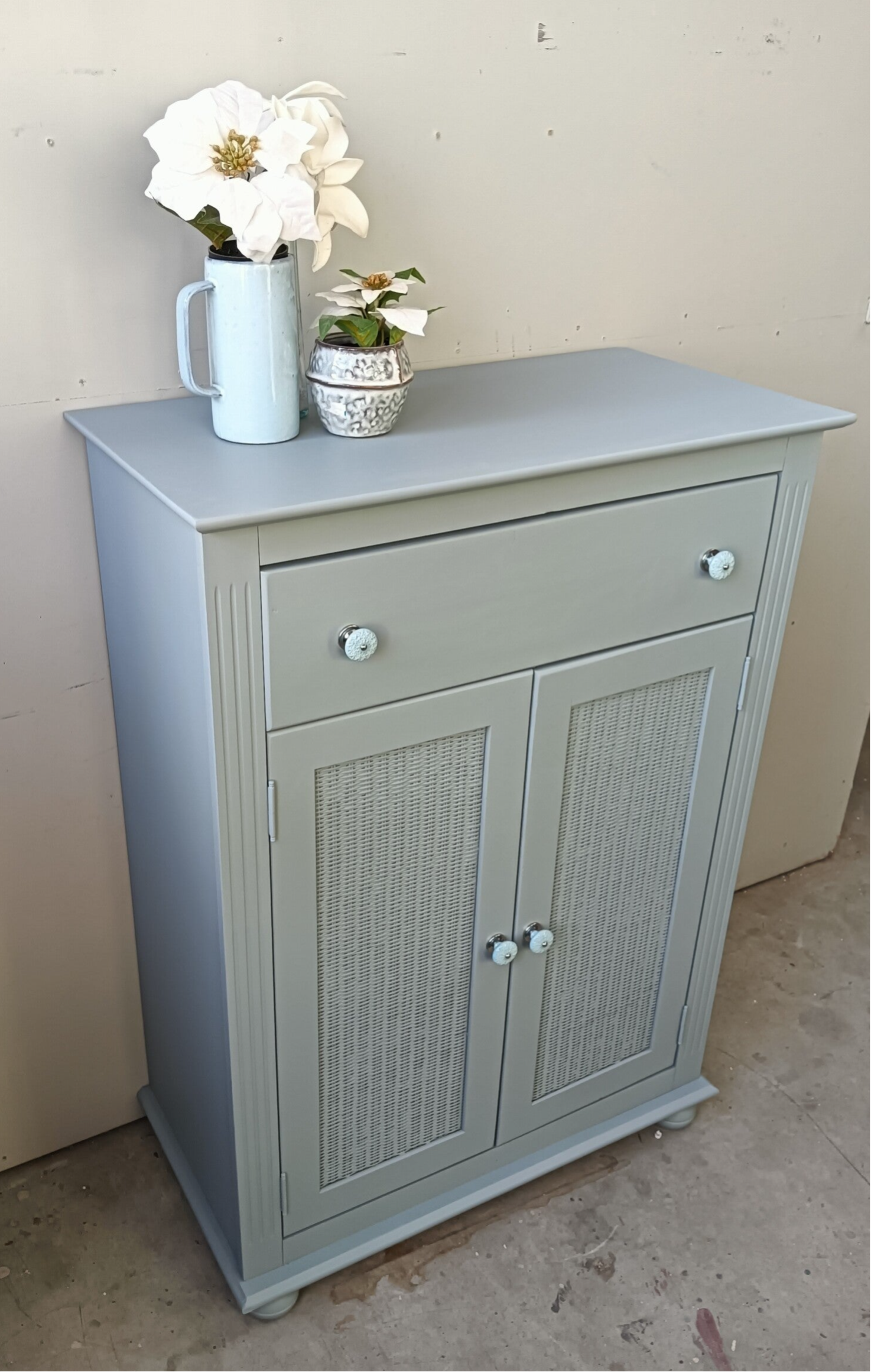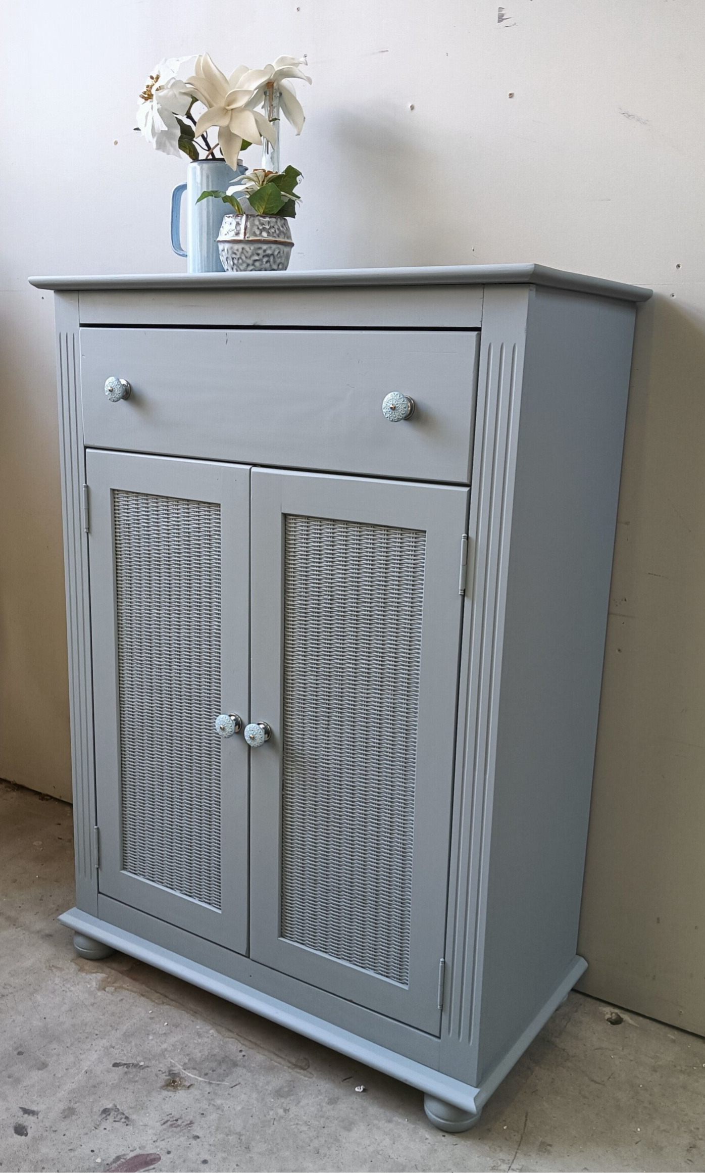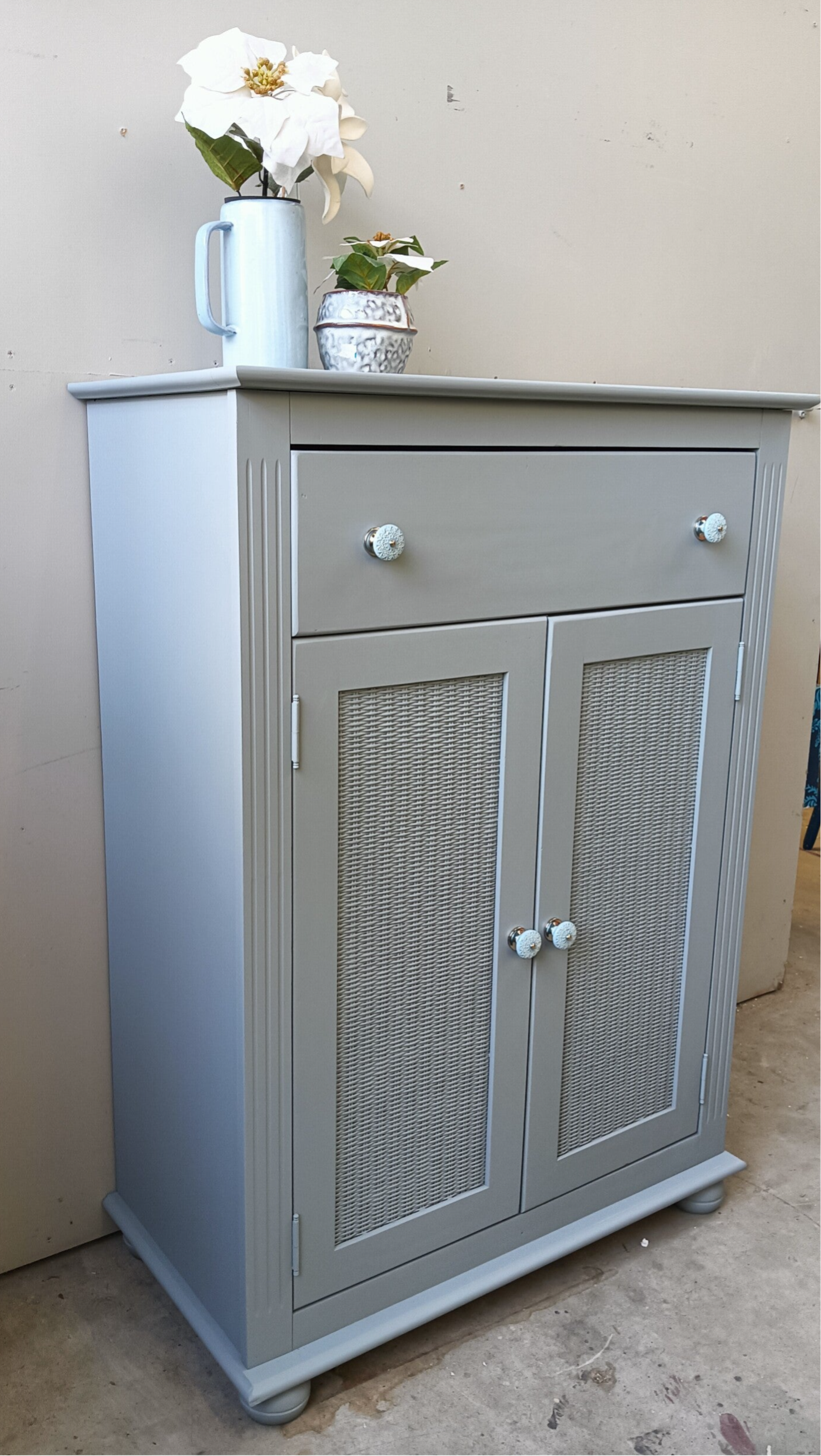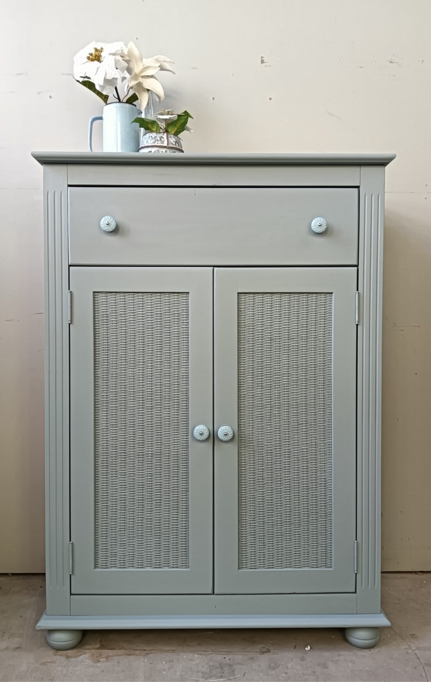 Wow, hoe leuk is deze kast geworden en die kleur !!! Toffe garderobe kast met lade en achter de deurtjes heerlijk wat planken en een hang gedeelte. Toffe bijpassende knoppen mochten op deze kanjer natuurlijk niet ontbreken! Wij zien deze natuurlijk alweer helemaal shinen op een vrolijke kinderkamer, maar in een kleurrijk interieur past deze knapperd natuurlijk ook!