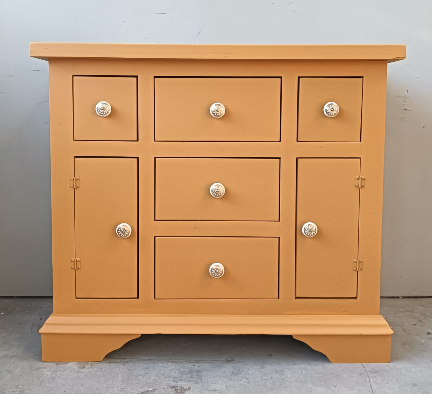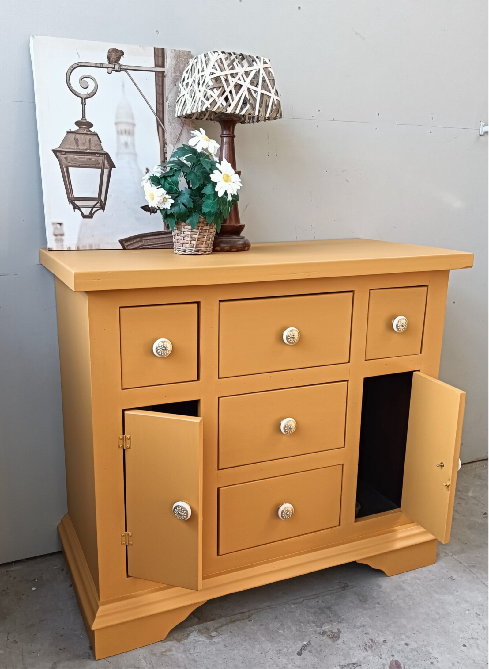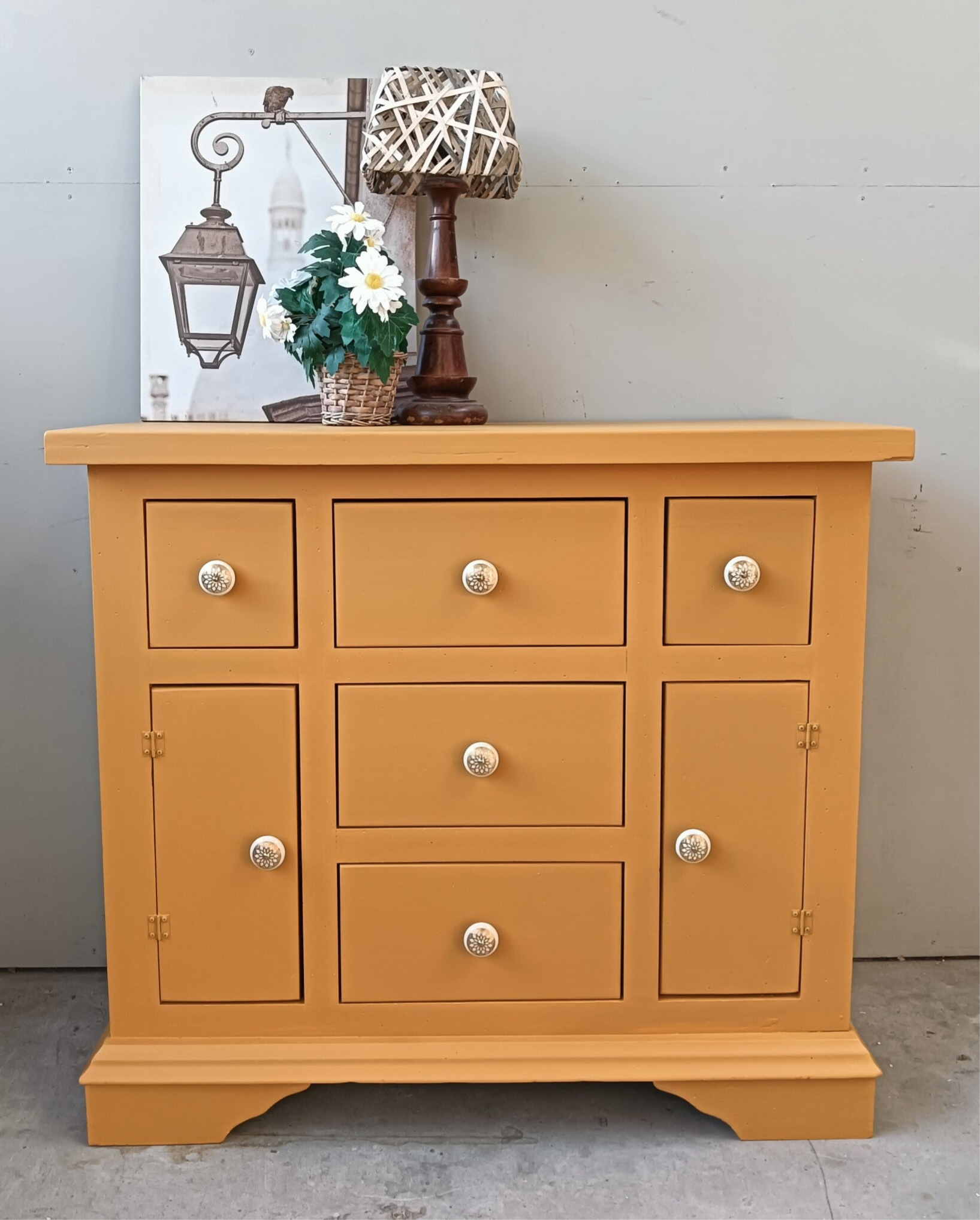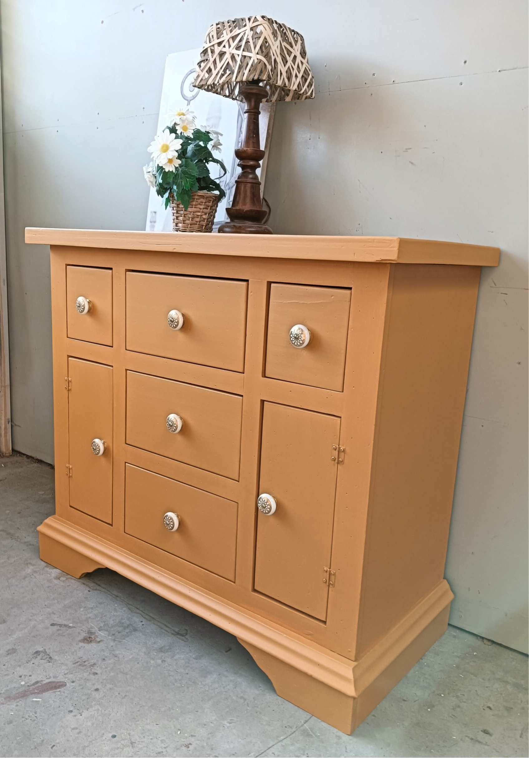 Wauw, wat een heerlijke kast is dit! Een fijn model apothekerskast in de waanzinnig mooie kleur Mustard van Fusion Mineral Paint. Warm, fris en chiq komen hier goed samen. De mooie knoppen mochten hier uiteraard niet ontbreken. Een heerlijke eycather voor in iedere ruimte met voldoende opbergruimte! Ennuh....ook heel goed als commode te gebruiken ;-)