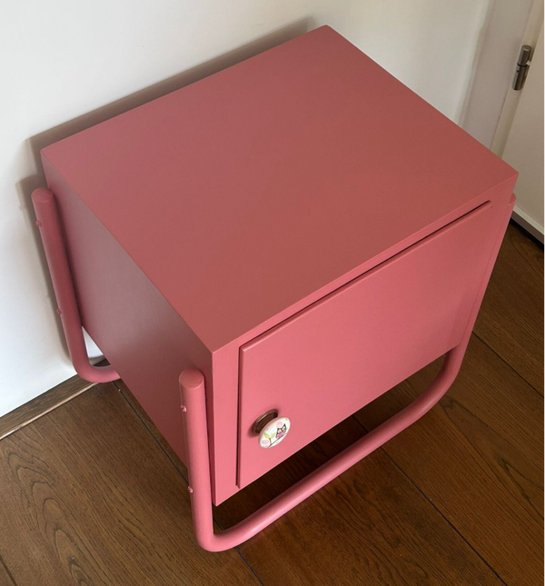 Een dot van een kastje, maar de kleur is natuurlijk ook helemaal vrolijk. Hier is gekozen om 2 kleuren van Fusion in de mix te doen, met dit als super fijn resultaat. Het deurtje is voorzien van mooie bijpassende knop en ook de binnenzijde heeft een bijpassend design.