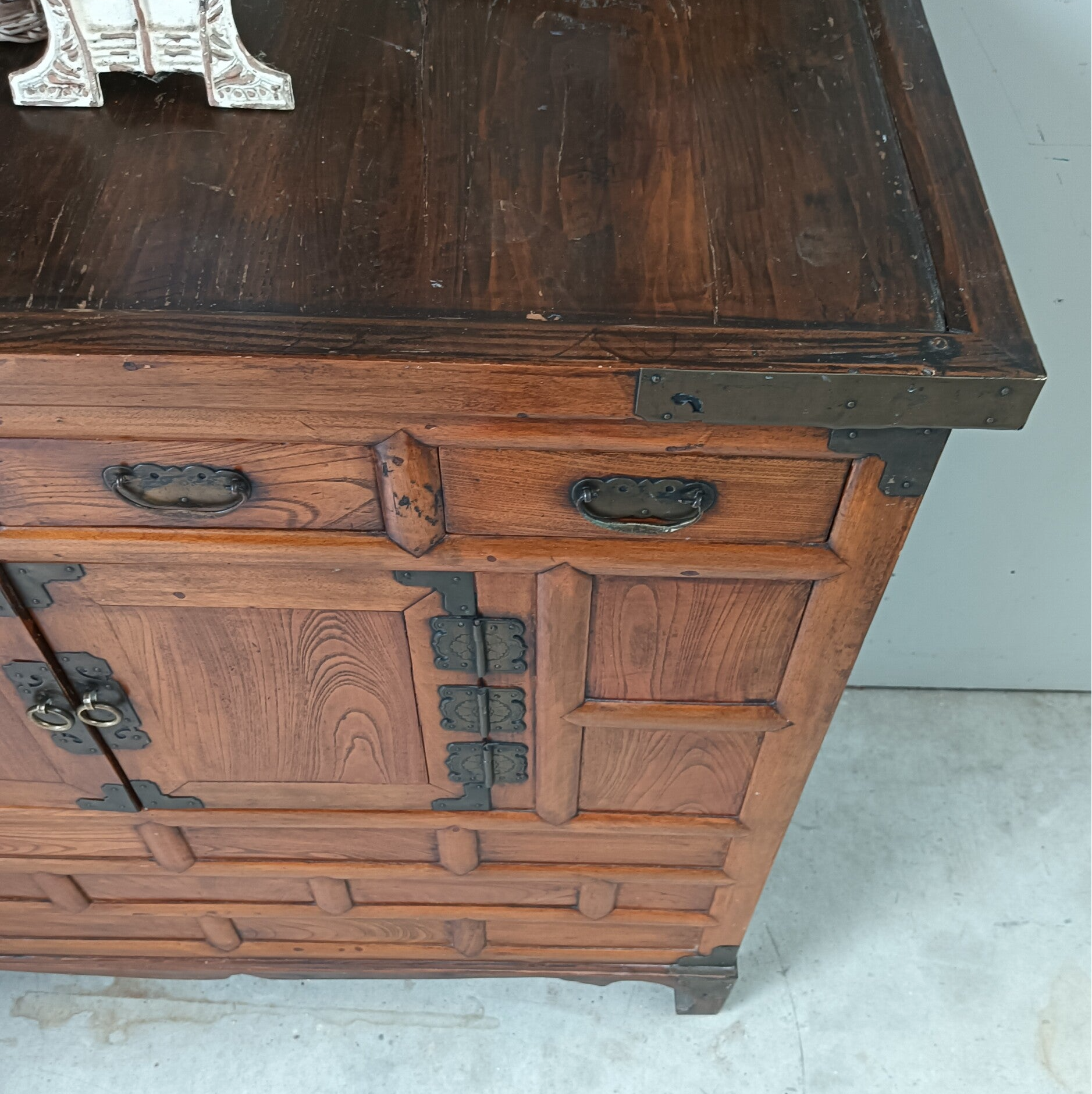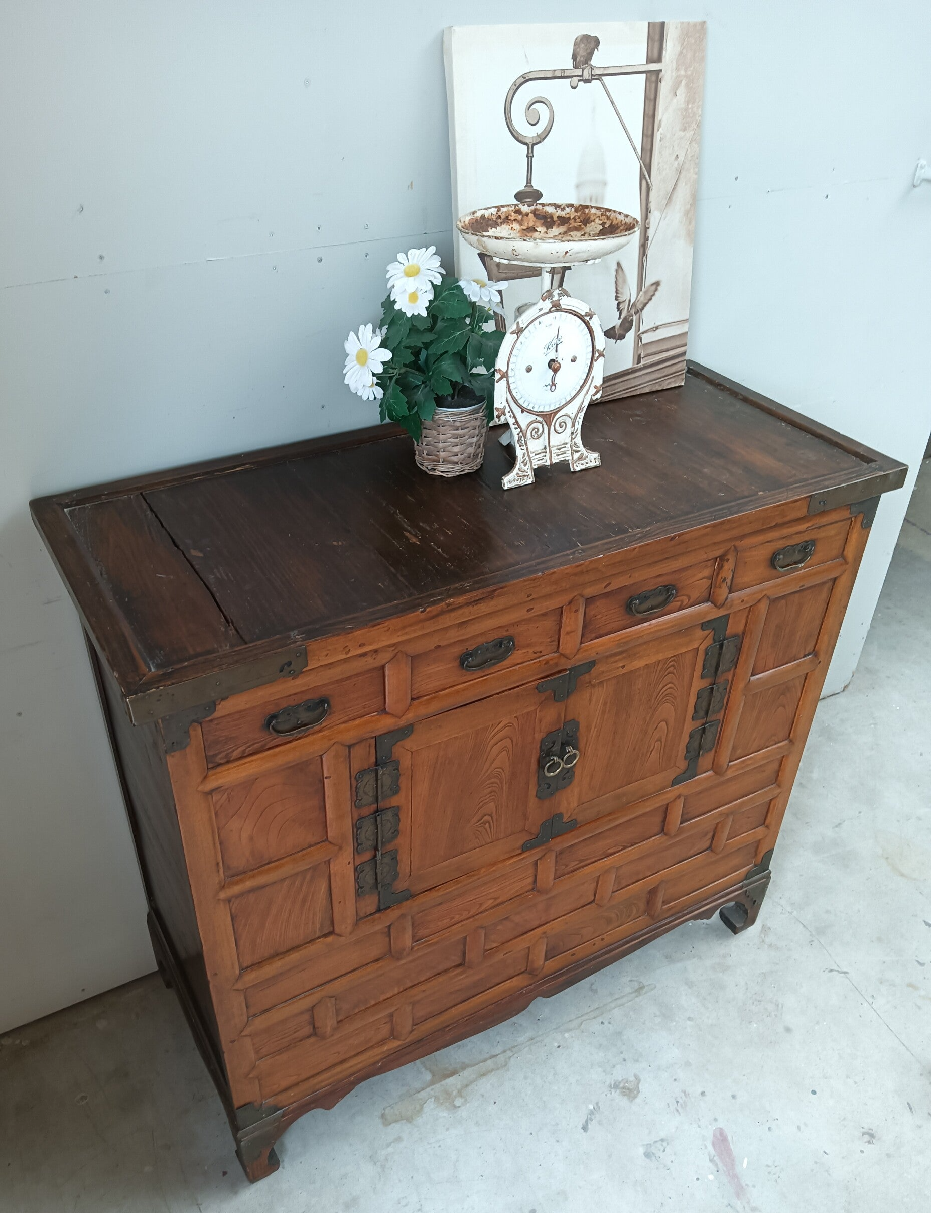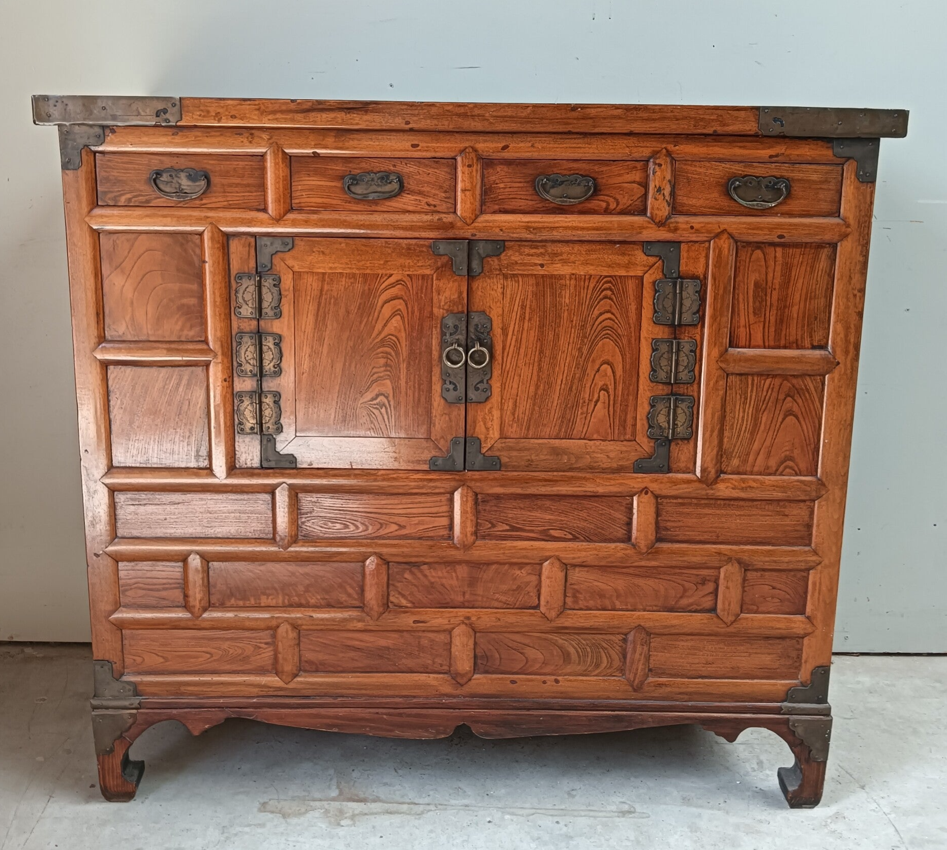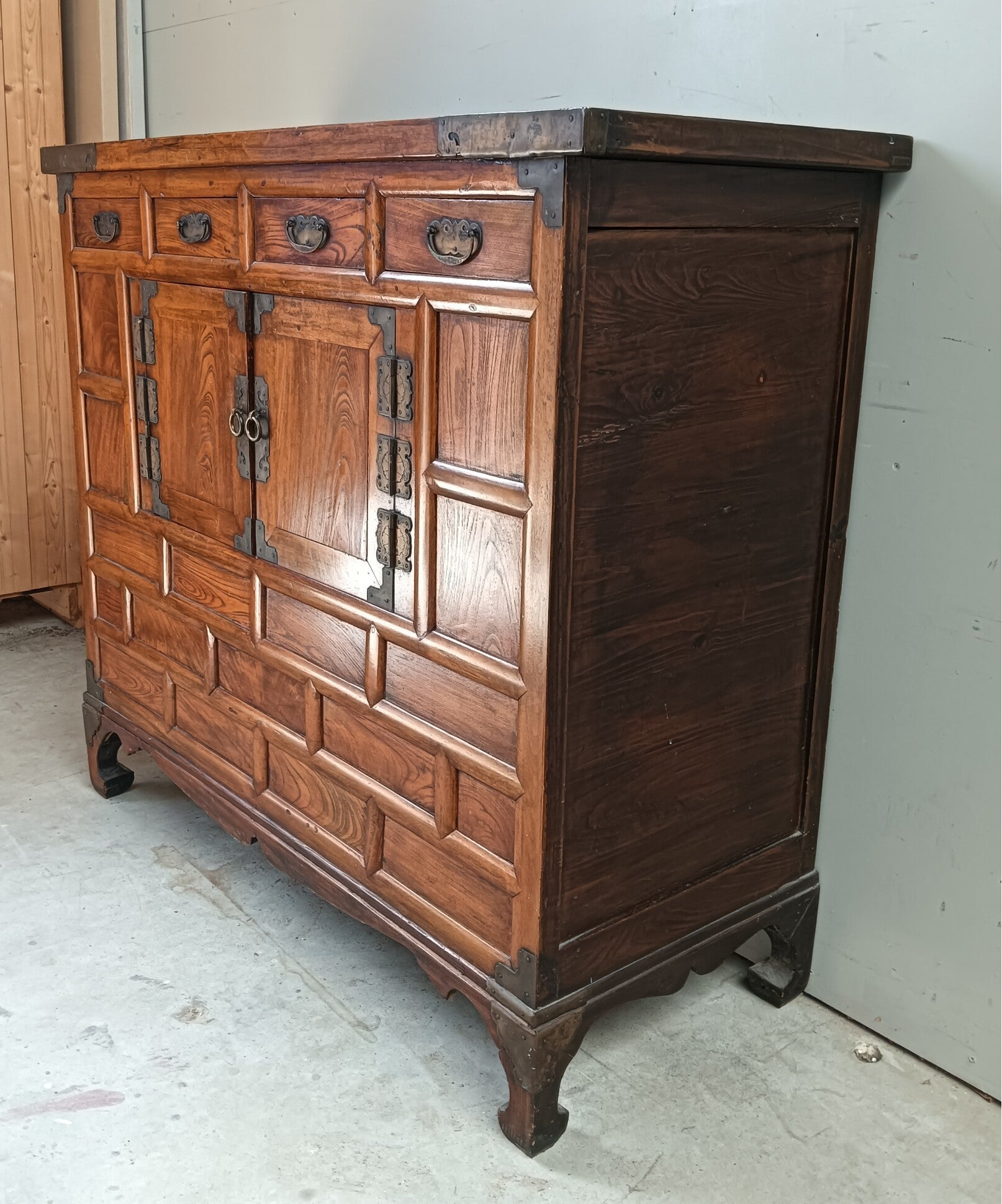 Wat een kanjer van een kast. Nog helemaal in haar oosterse orginele jas en wat een uitstraling heeft ze. Een aparte in haar soort. Deze kom je maar weinig tegen. Uitstekend te gebruiken als dressoir, tv kast, commode.....hoe dan ook, een echte eyecather is het zeker!