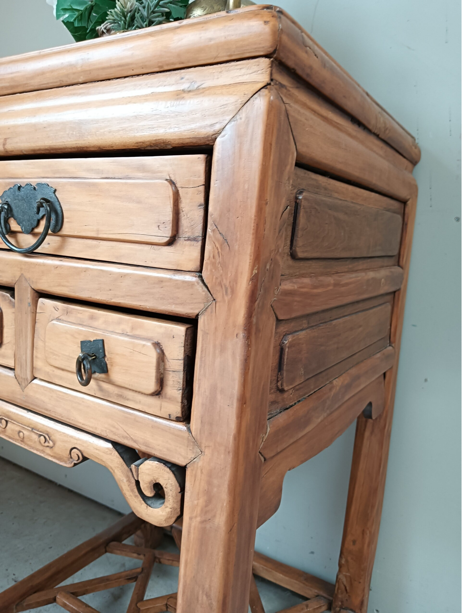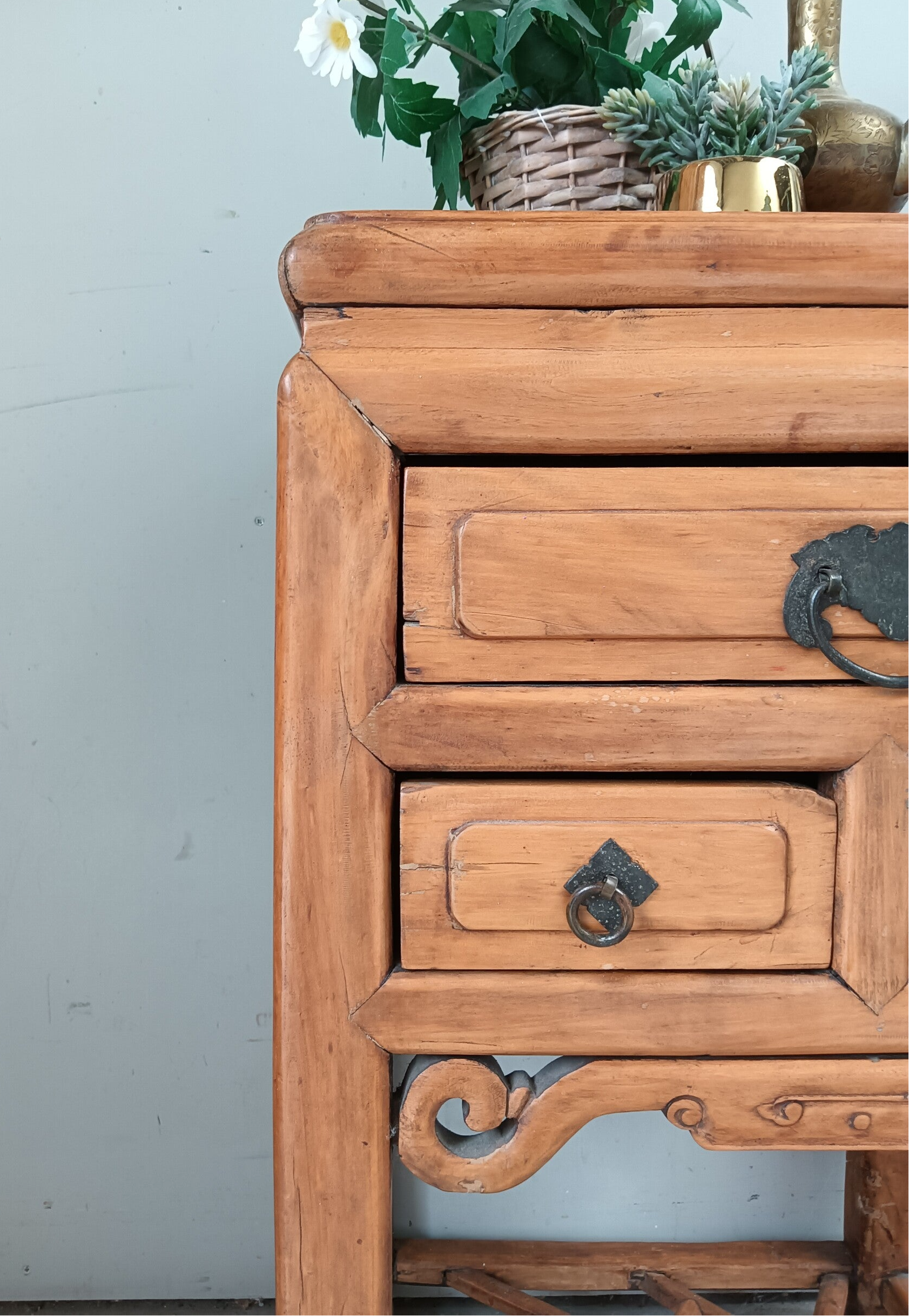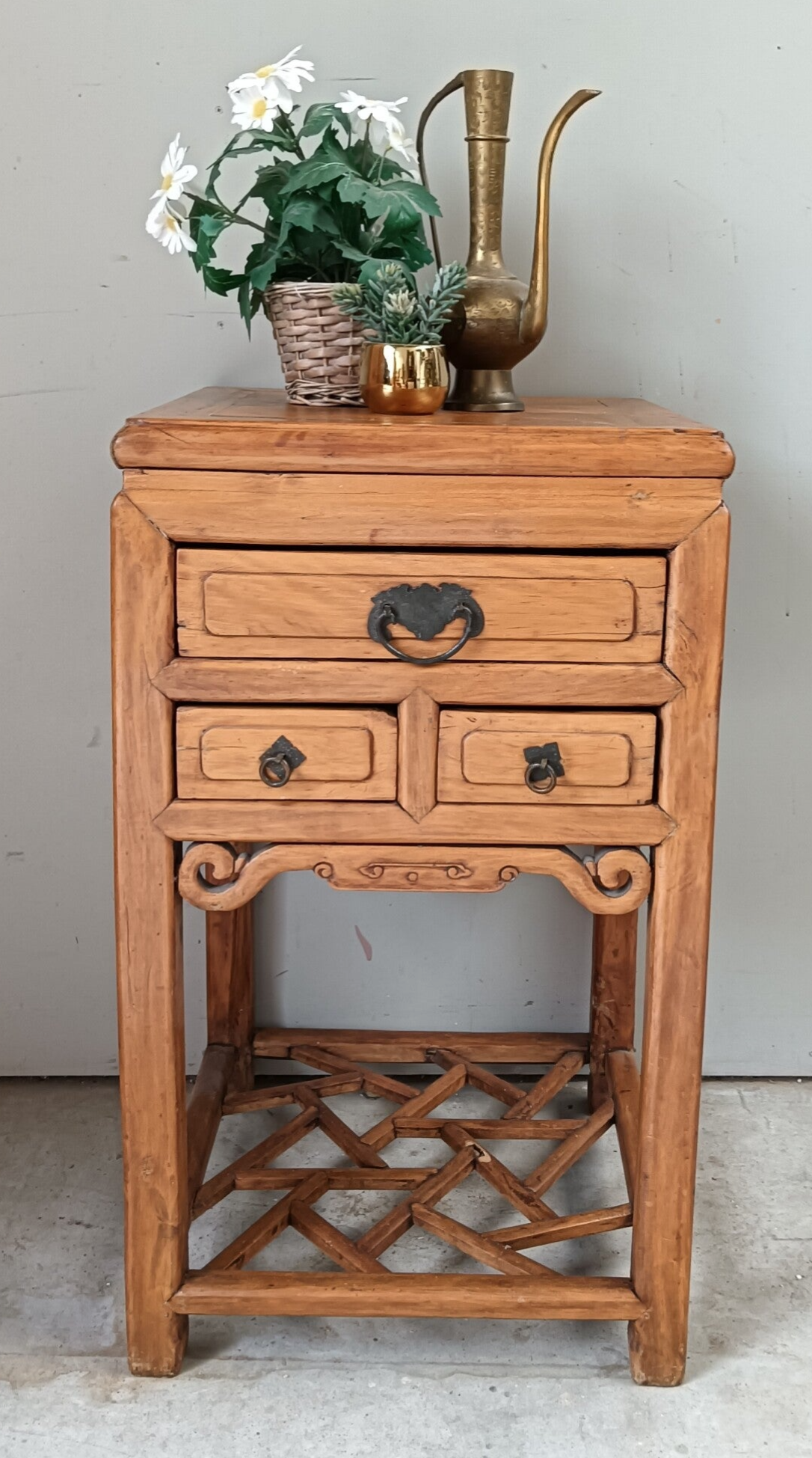 Een waanzinnig tof ladenkastje en nog helemaal in orgninele staat, ze is zeker op leeftijd, maar dat geeft haar juist dat beetje extra karakter. De mooie vormgeving in combinatie met een prachtige beslag op de laadjes maakt dit kastje een lust voor het oog. Een kastje met veel potentie. Kan goed als planten tafel dienen, maar ook super leuk in de hal of als nachtkastkje in de slaapkamer. Maw...legio mogelijkheden voor deze knapperd