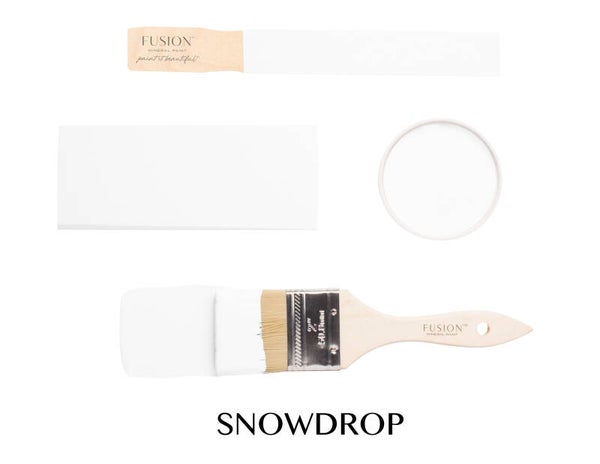 De kleur Snowdrop van Fusion Mineral Paint is de witste is haar soort. Hoewel een wit tint altijd de eigenschap heeft slecht te dekken, doet deze je verstelt staan. Over neutrale kleuren heb je aan 2 lagen voldoende. Donkere ondergronden hebben misschien een laagje extra nodig.