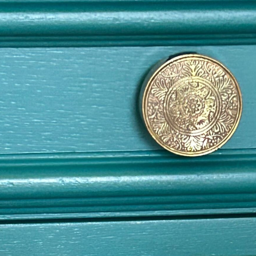 Het ideale model voor in de hal, maar ook voor in een wat kleinere slaapkamer of woonkamer of.....nou genoeg plekjes waar dit leuke "zogenaamde" halkastje kan shinen. De kleur, refrew blue is een stoere en frisse kleur van Fusion Mineral Paint. Ooh en wauw, heb je die waanzinnige knop op de lade gezien, die past er wat ons betreft helemaal bij. Ook de deurtjes zijn voorzien van mooie bijpassende knopjes. Al met al een mooi en praktisch kastje met veel potentie / mogelijkheden.