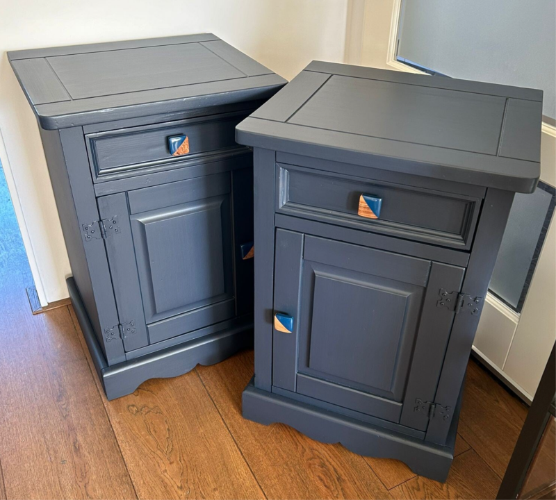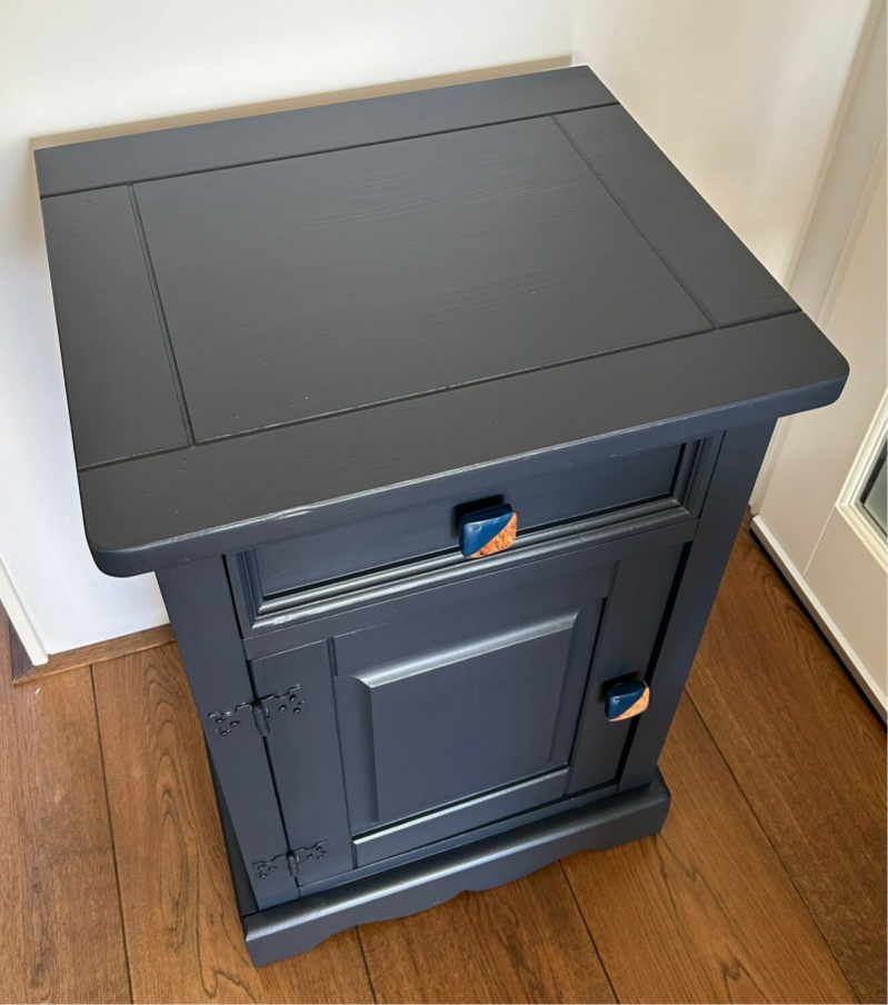 Kanjers van nachtkastjes deze mooie set. De kleur is Midnight Blue van Fusion Mineral Paint, wat zich goed laat omschrijven als een diep nacht blauwe kleur. Qau afmetingen ook uitstekend geschikt voor naast een boxspring. Op de de laatjes en deurtjes mocht een mooie bijpassende knop niet ontbreken, dit maakt het geheel helemaal af!