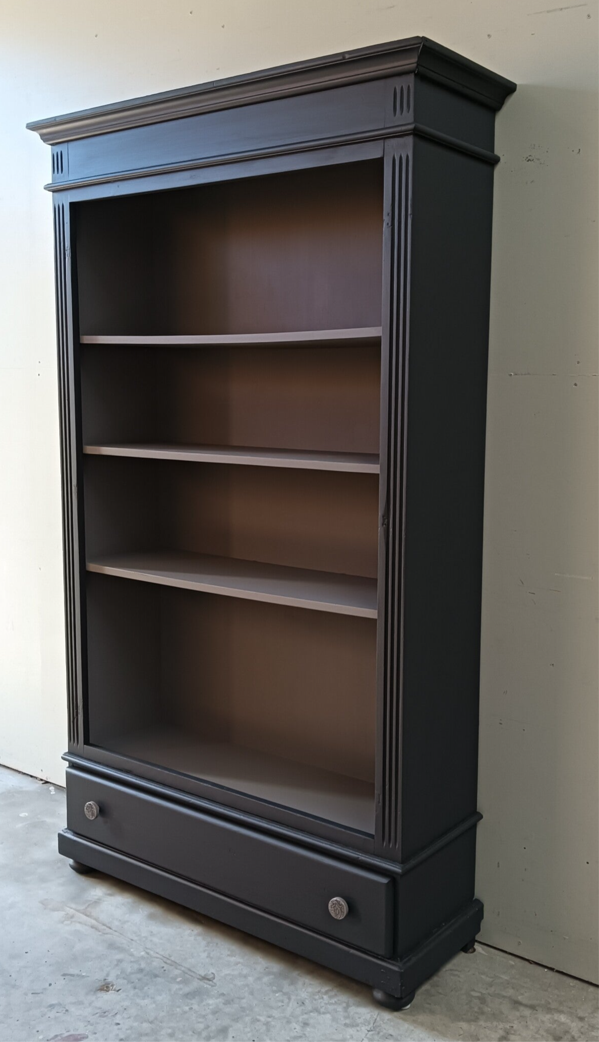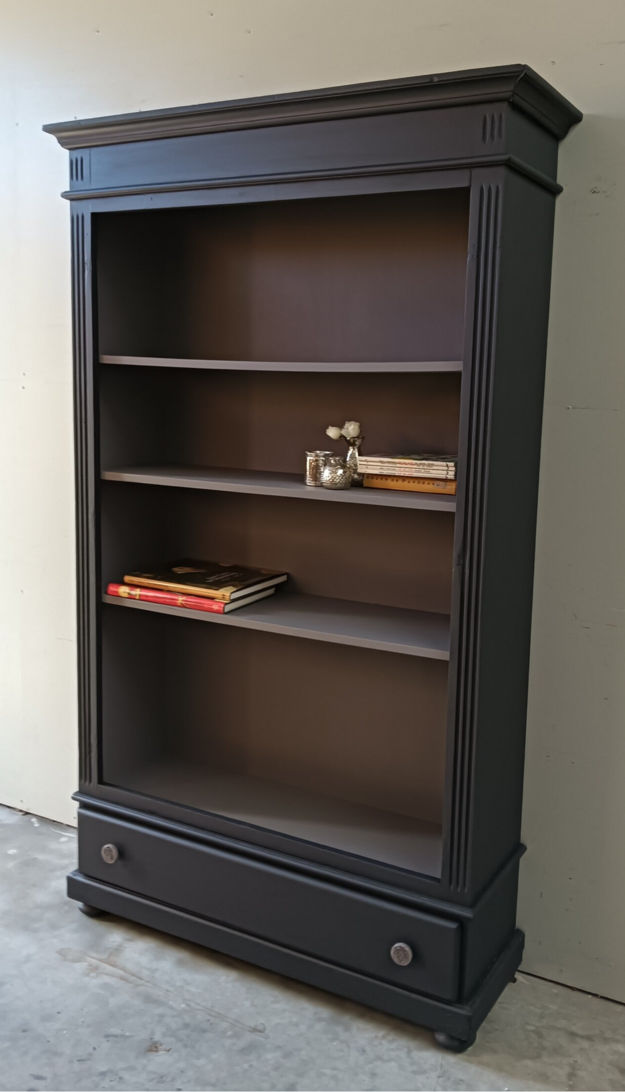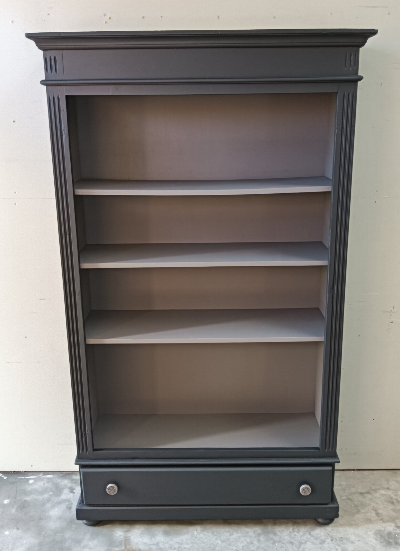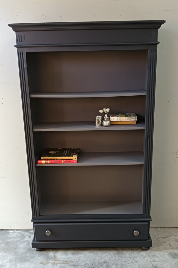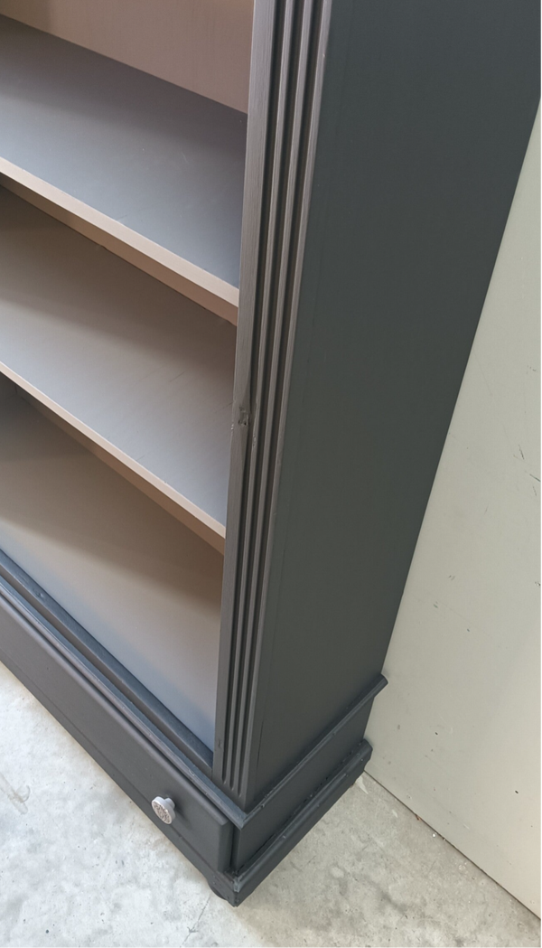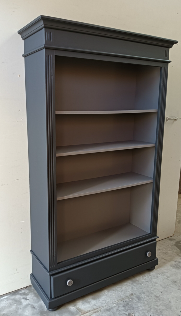 Een boekenkast welke de ruimte een chique uitstraling geeft. De combinatie van de 2 kleuren maakt dit een wat ons betreft een super gave kast. Uniek in zijn of haar soort, er is er tenslotte maar 1 van. Lekker wat hoogte en wat breedte. Ooooh en nog een fijne lade onder op en natuurlijk mochten hier de bijpassende porseleinen knoppen niet ontbreken.