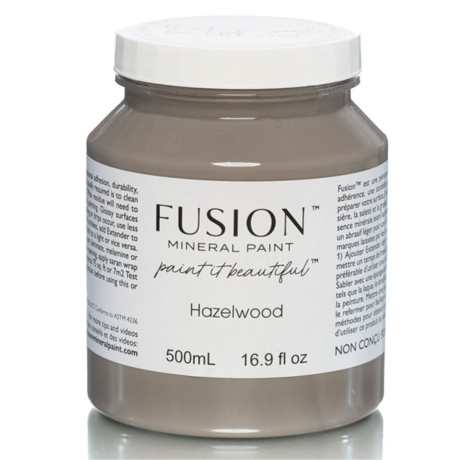 De kleuren die gebruikt zijn Ash en Hazelwood van Fusion Mineral Paint. Deze 2 samen gaan goed samen en versterken elkaar uitstekend.