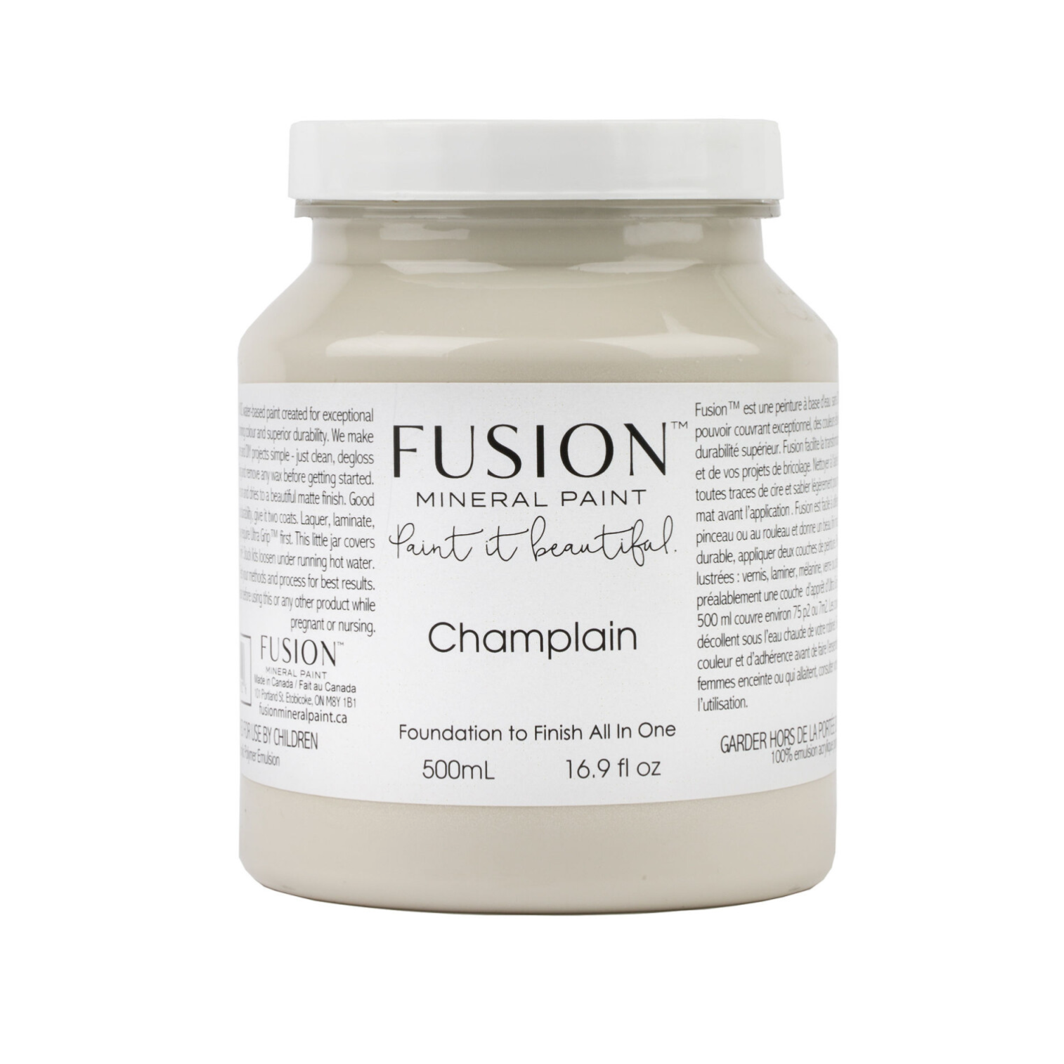 De neutrale kleur Champlain van Fusion Mineral Paint is een prachtige lichte kleur! De kleur geeft een oud meubel een frisse en luxe uitstraling en kan op diverse ondergronden worden gebruikt.
