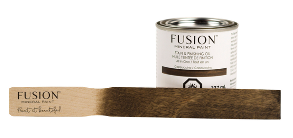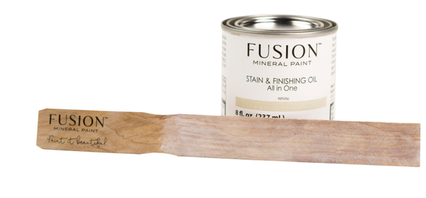 Fusion Mineral Paint Stain and Finishing oil voegt kleur toe aan je oppervlak, en is tegelijkertijd een verzegelende olie! Deze olie dringt in het hout en laat geen dikke laag achter, maar trekt echt volledig in het hout. Dit is perfect om te gebruiken voor vloeren of tafelbladen die vaak gebruikt worden.