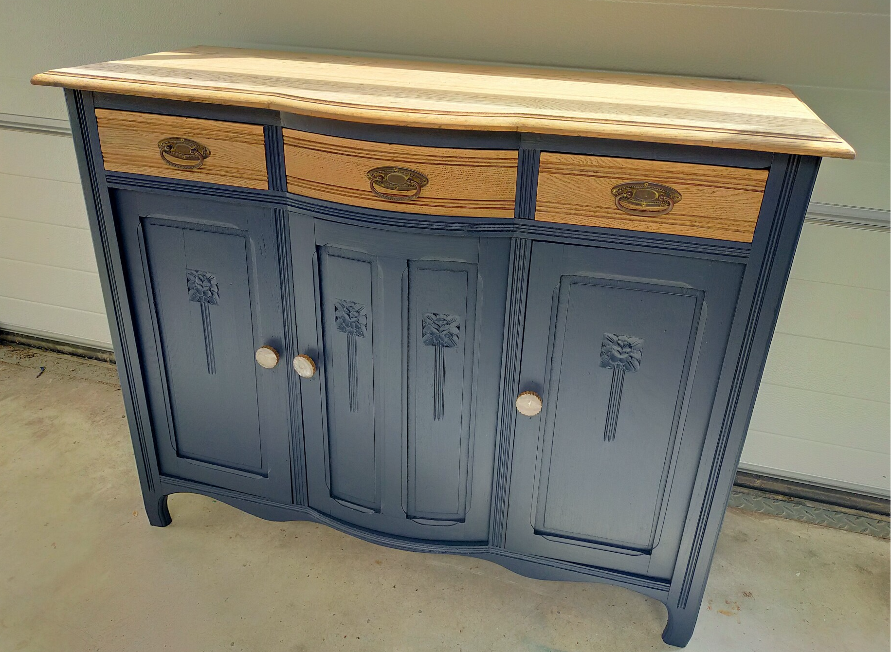 Dressoirs, Commode of badkamer meubel...tja mogelijkheden genoeg voor deze mooierd. De combinatie met het diep donkerblauw en het natuurlijke hout maakt het een prettig geheel. Hey verfijnde houtsnijwerk en de combinatie met het bijpassende beslag maakt het helemaal af.