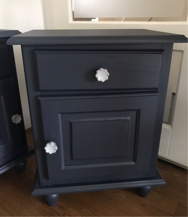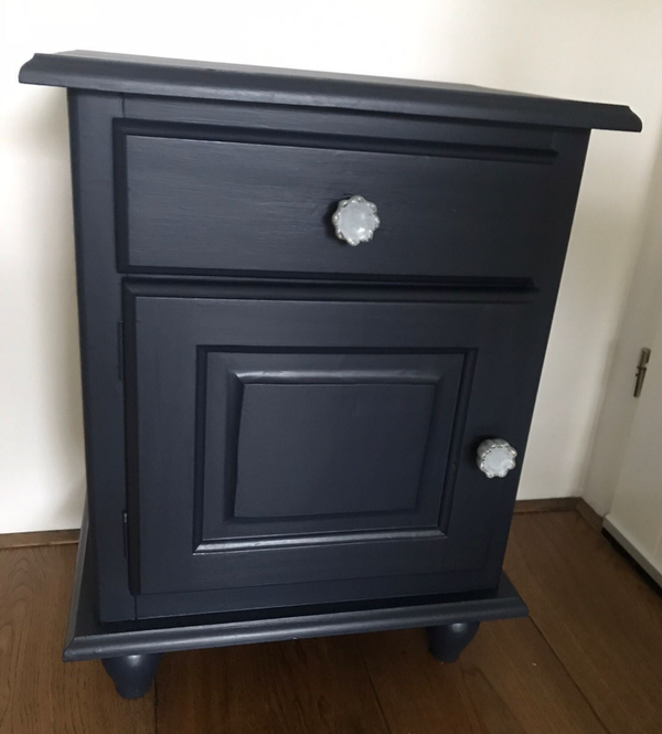 Een prachtige set deze nachtkastjes in de diep blauwe kleur, Midnight Blue van Fusion Mineral Paint. In combinatie met de mooie bijpassende porseleinen knoppen, maakt dit deze set een chic geheel.