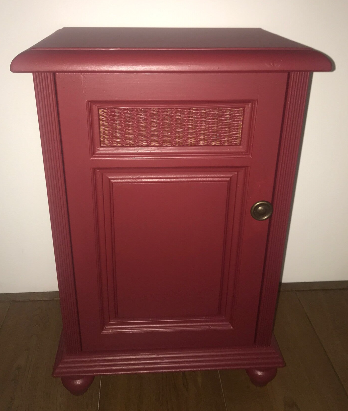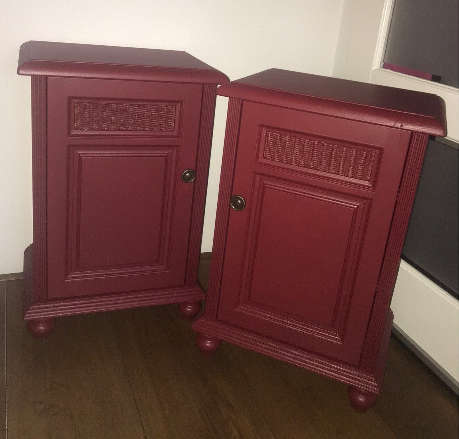 Een prachtige set deze nachtkastjes in de mooie en warme rood tint Cranberry van Fusion Mineral Paint. In combinatie met de mooie bijpassende messing/kopere knoppen, maakt dit deze set een chic geheel.